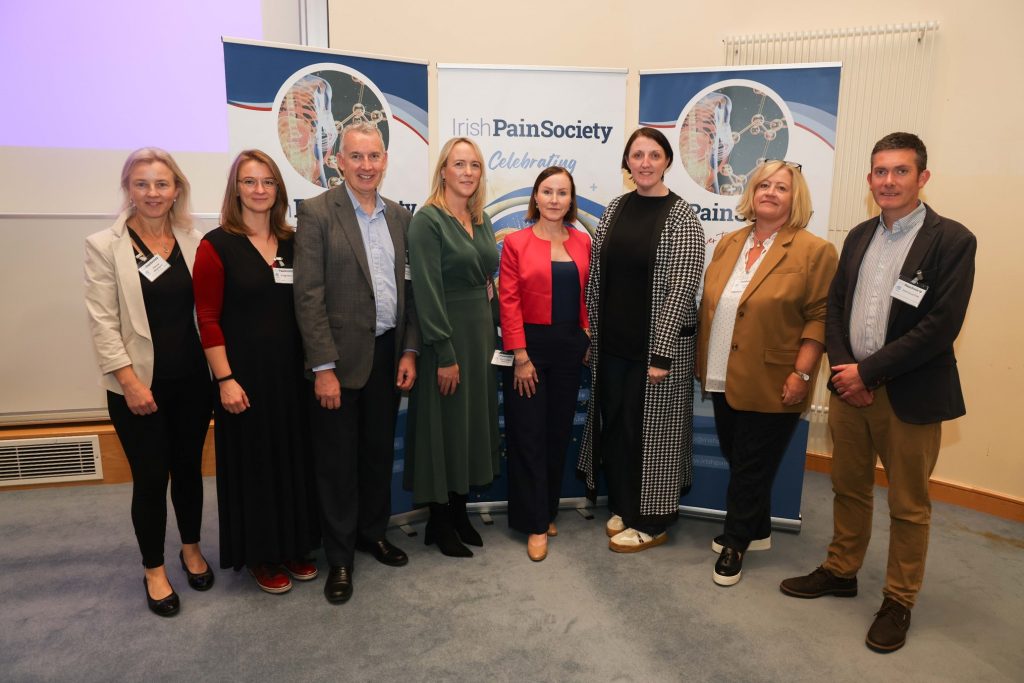 Members of the Irish Pain Society Council.  From left to right: Patricia Molyneaux, Dr Olga Baron, Prof Brian McGuire, Dr. Michelle Roche (President), Prof Siobhain O’Mahony (President-Elect), Anne Marie Kiernan, Dr Joanne O’Brien, Prof David Finn.  Members not in photo: Dr Camillus Power, Dr Cormac Mullins, Prof Kieran O’Sullivan, Dr Patrick Finan, Dr Tadhg Lynch, Dr John Browne, Dr Andrew Purcell, Dr Zaeem Siddique.