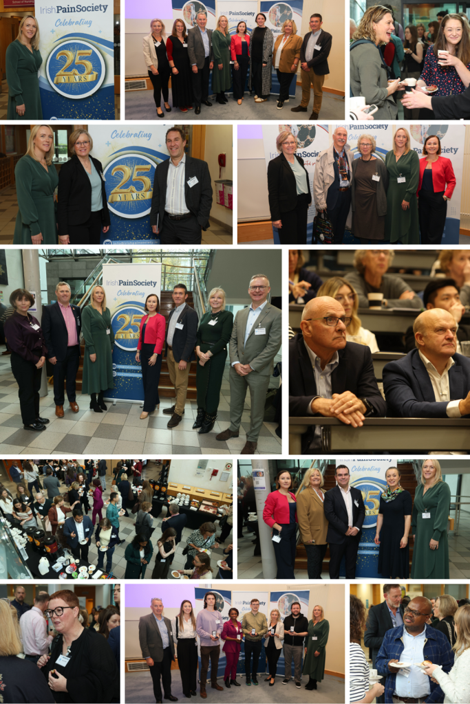 The Irish Pain Society (IPS) hosted the 25th Annual Scientific Meeting (ASM) on the 18th October at Áras Moyola, University of Galway. With over 130 delegates and 10 exhibitors, 11 invited speakers, panelists and chairs, 54 posters and 8 short oral presentations, this years ASM was an excellent forum to showcase the latest in pain research and pain management both nationally and internationally and celebrate this momentous occasion for the IPS. The central theme of this years ASM was ‘Pain Management, Research and Education in Low- and Middle-Income Settings’, reflecting the 2025 Global Year theme of the International Association for the Study of Pain (IASP). The meeting was endorsed by the European Pain Federation (EFIC) and following a brief introduction by the IPS President, Dr Michelle Roche, officially opened by the newly appointed President of the University of Galway, Prof David Burn. The plenary lecture was given by Prof Luis Garcia-Larrea (Lyon Neuroscience Centre and current President of the EFIC) entitled ‘Cortical Stimulation for Chronic Pain: from anecdote to evidence’. This stimulating talk was following a by research talks from international research experts including Dr Nadja Nestler (Paracelsus Medical University and president-elect of the German Society for Pain Medicine) who provide a nursing perspective on the area of pain management and research. Prof Kevin Vowles (Queen’s University Belfast) shared insights from three decades of clinical psychology experience, emphasising that chronic pain is a biopsychosocial problem rather than purely biological. Prof Harriët Wittink (HU University of Applied Sciences Utrecht) presented on ‘Physical Activity Patterns and Pain’and Prof. Jeffrey Mogil (E.P. Taylor Professor of Pain Studies, Department of Psychology, McGill University, Montreal, Canada) delivered a comprehensive talk titled “Pain, Sex, and Death”, exploring sex differences in pain perception and mechanisms. All of the invited speakers also participated in the discipline-specific educational meetings and workshops which provided valuable discussion and insight. Chaired by Dr Conor Hearty (Dean of the Faculty of Pain Medicine, and Consultant in Pain Medicine at the Mater Misericordiae University Hospital, Dublin), Dr David Moore, Consultant in Pain Medicine at Beaumont Hospital Dublin, shared insights into his journey developing an integrated pain management community service iPainCare, at Beaumont Hospital. Aligning with the theme of the meeting, a panel discussion on tramua-informed pain care saw panellists included Prof Kevin, Dr David, Ms Roisin Hosie (Physiotherapist), and Niamh Walsh (representing Chronic Pain Ireland and a person with lived experience of pain) discuss the latest opinions and practice in this field with audience involvement throughout.
