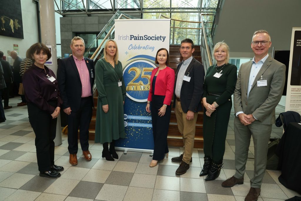 Members of the Irish Pain Society Council.  From left to right: Patricia Molyneaux, Dr Olga Baron, Prof Brian McGuire, Dr. Michelle Roche (President), Prof Siobhain O’Mahony (President-Elect), Anne Marie Kiernan, Dr Joanne O’Brien, Prof David Finn.  Members not in photo: Dr Camillus Power, Dr Cormac Mullins, Prof Kieran O’Sullivan, Dr Patrick Finan, Dr Tadhg Lynch, Dr John Browne, Dr Andrew Purcell, Dr Zaeem Siddique.